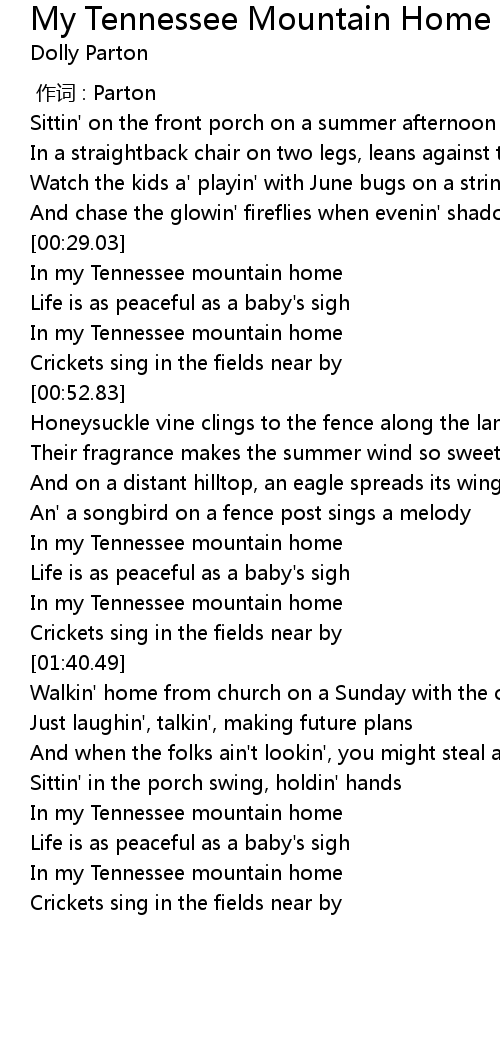| [00:29.46] | In my Tennessee mountain home |