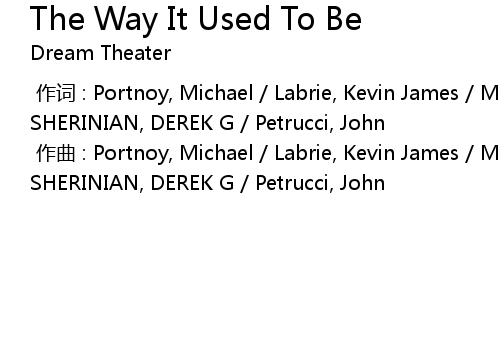 | [00:00.000] | zuo qu : Portnoy, Michael Labrie, Kevin James Myung, John Ro SHERINIAN, DEREK G Petrucci, John |