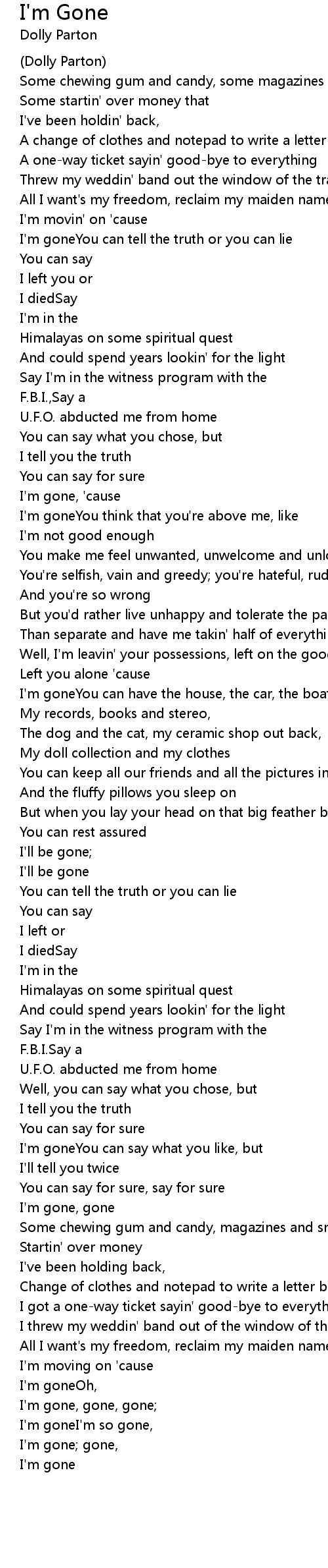 I'm gone, gone, gone; |