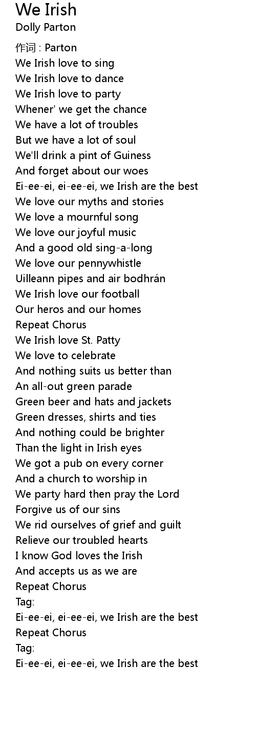| Ei-ee-ei, ei-ee-ei, we Irish are the best |