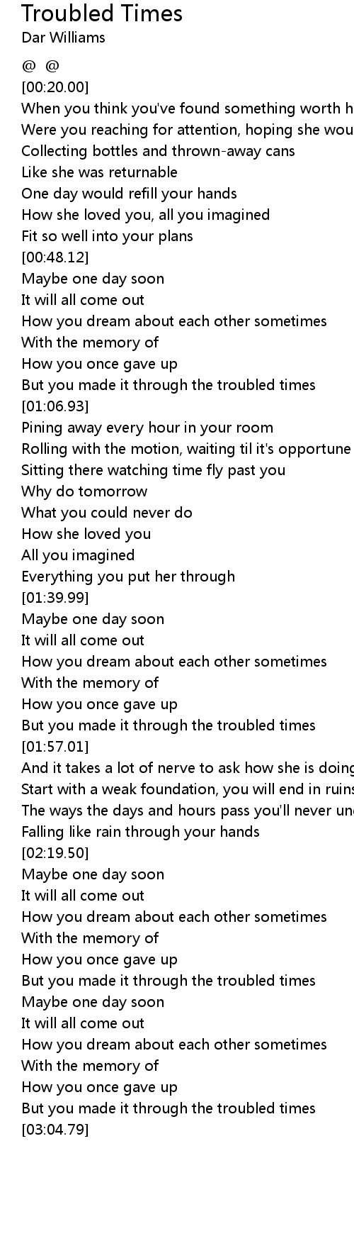 But you made it through the troubled times |