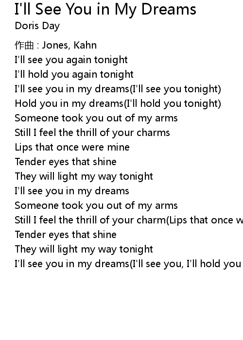 | I'll see you in my dreams(I'll see you, I'll hold you tonight in my dreams) |