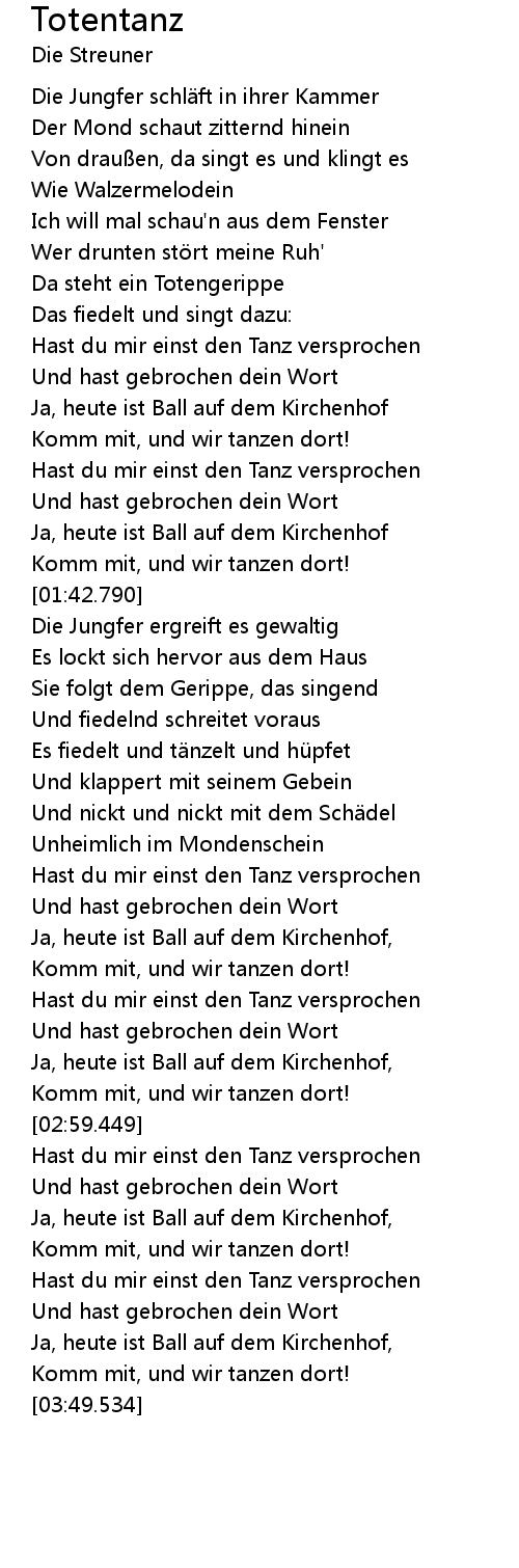 | [03:36.816] | Hast du mir einst den Tanz versprochen |