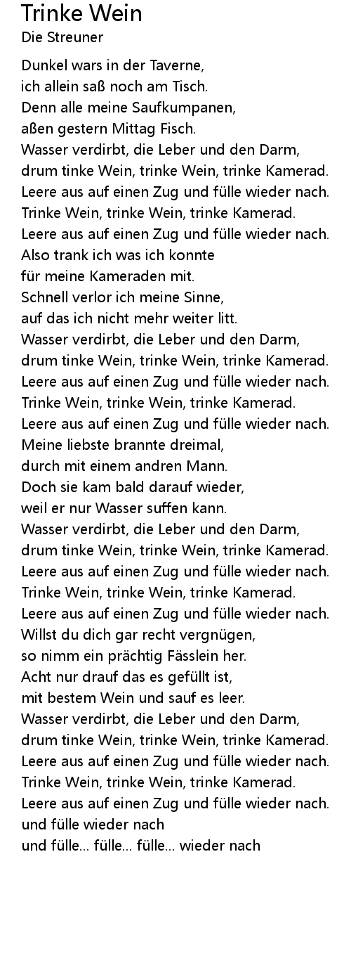 | drum tinke Wein, trinke Wein, trinke Kamerad. | |