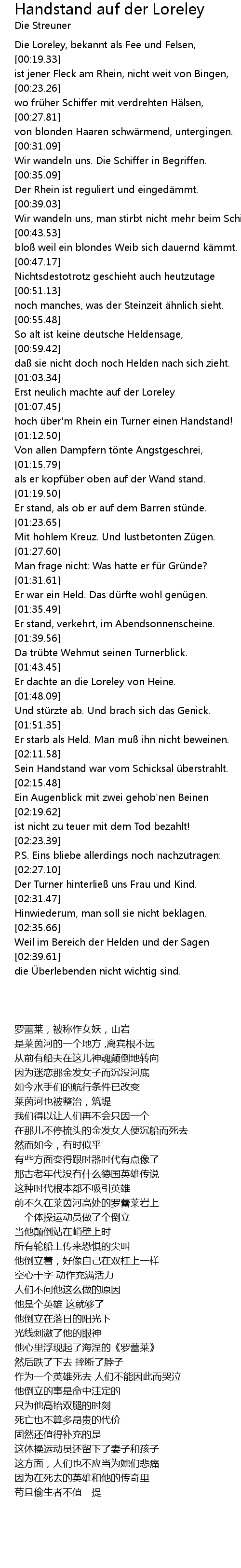 | [01:44.67] | Er dachte an die Loreley von Heine. |