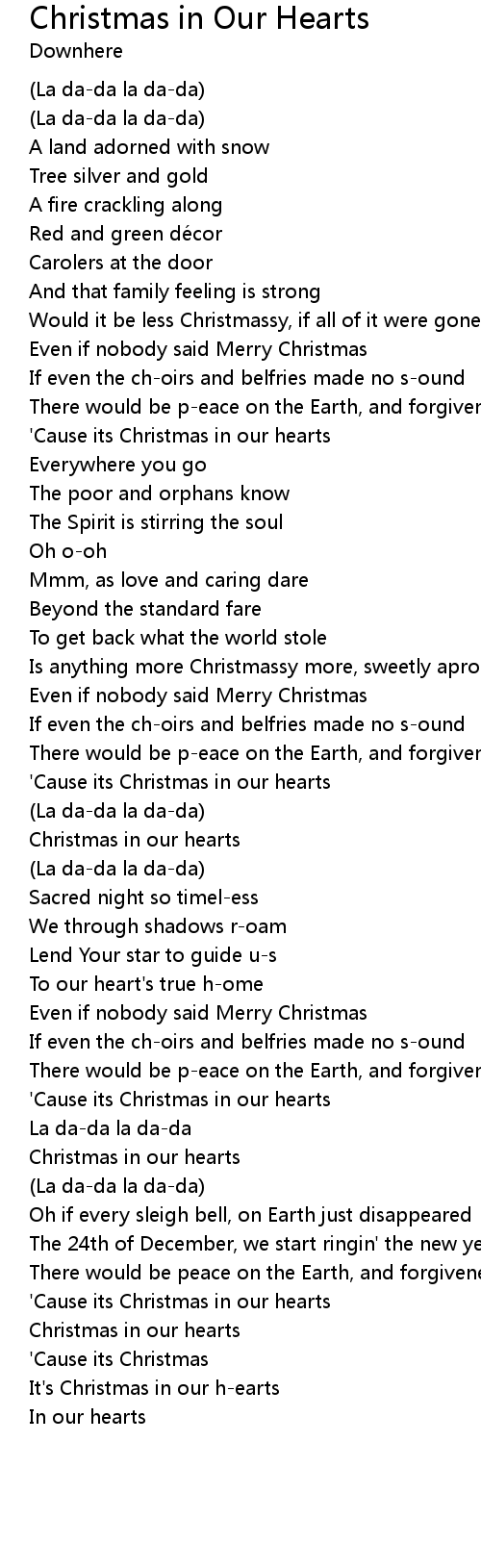 | ' Cause its Christmas in our hearts | |