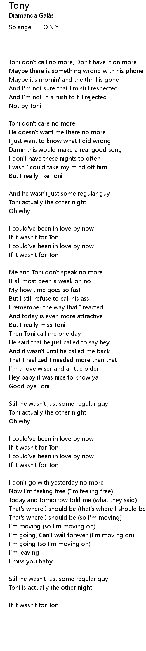 Toni don't call no more, Don't have it on more |