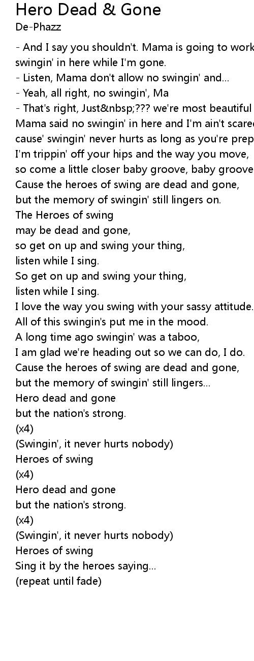 - And I say you shouldn't. Mama is going to work now and I don't want no swingin' in here while I'm gone. |