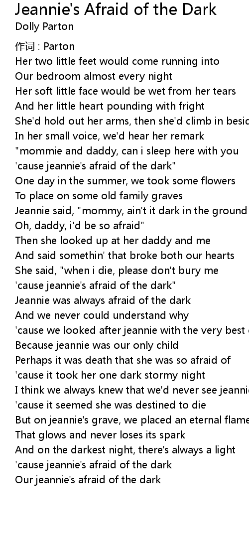 | 'cause jeannie's afraid of the dark" | |