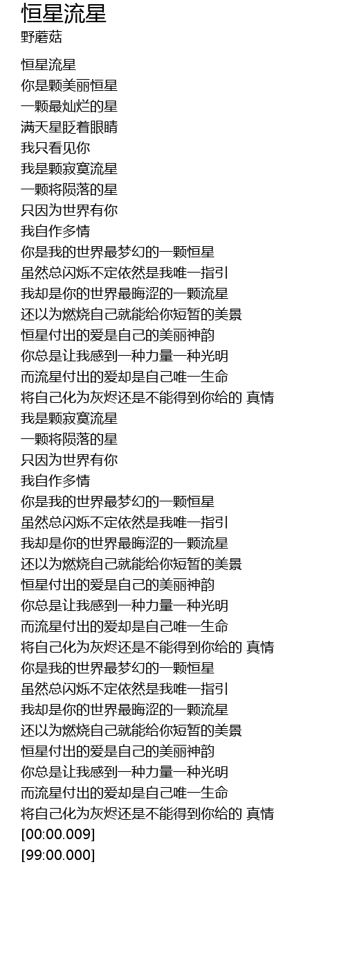 | [04:40.27] | 而流星付出的爱却是自己唯一生命 |