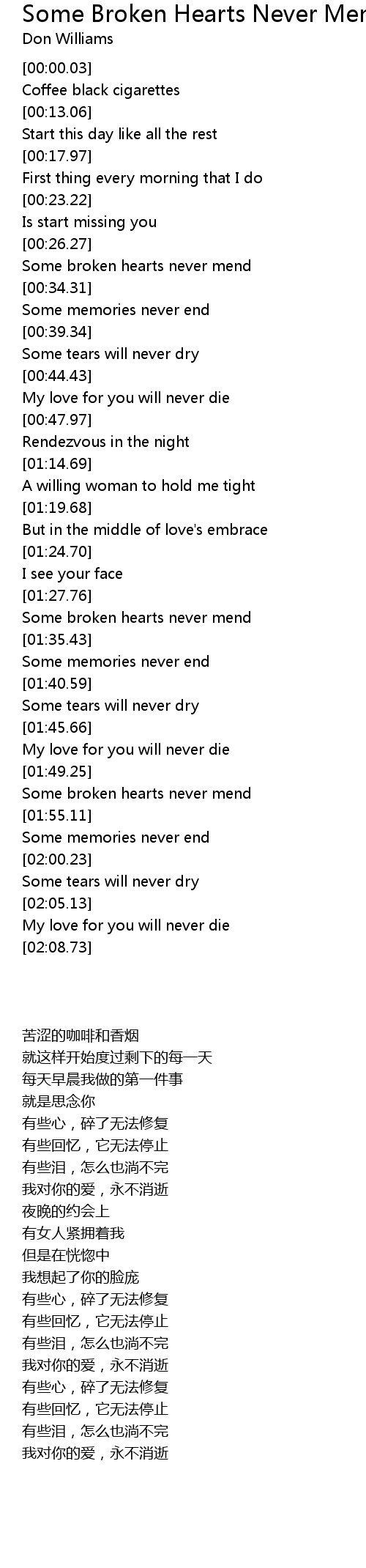 Some broken hearts never mend |