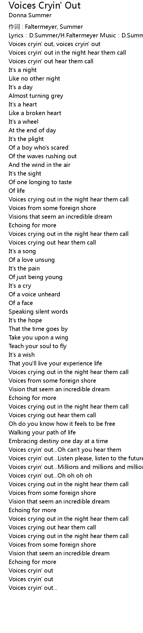 | Voices cryin' out... Millions and millions and millions of voices | |