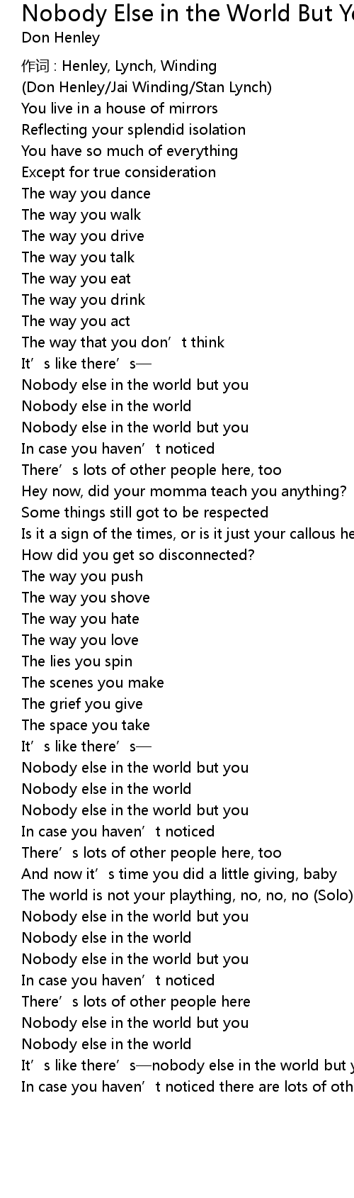 | Nobody else in the world but you | |