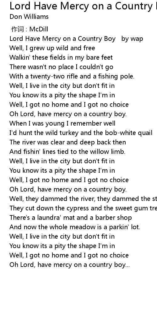 | [00:00.00] | Lord Have Mercy on a Country Boy by wap |