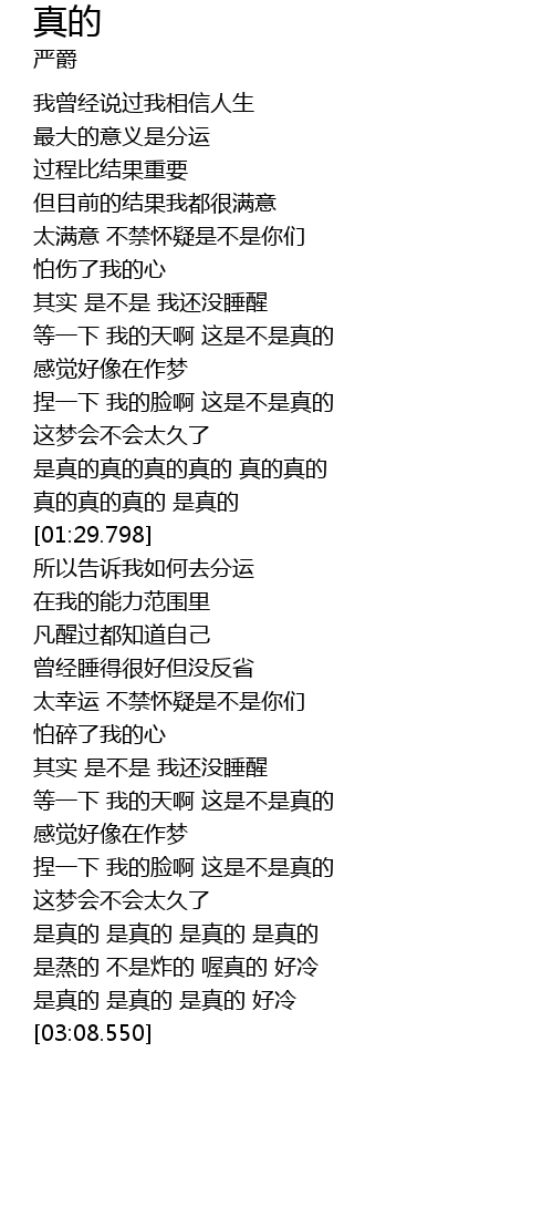 | [01:18.529] | 是真的真的真的真的 真的真的 |