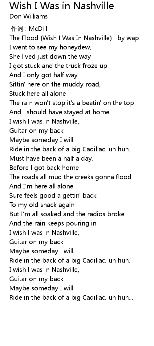 | [00:00.00] | The Flood Wish I Was In Nashville by wap |