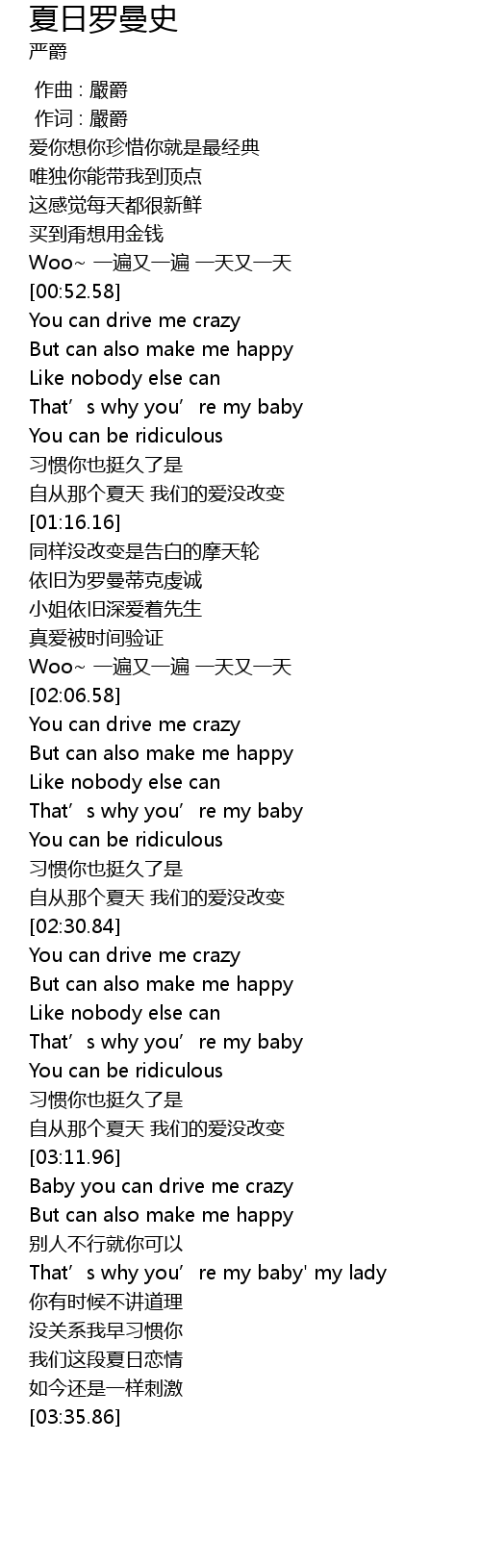 | [03:19.90] | That’s why you’re my baby' my lady |