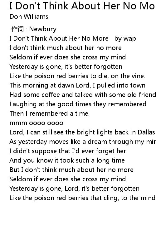 | [00:00.00] | I Don' t Think About Her No More by wap |