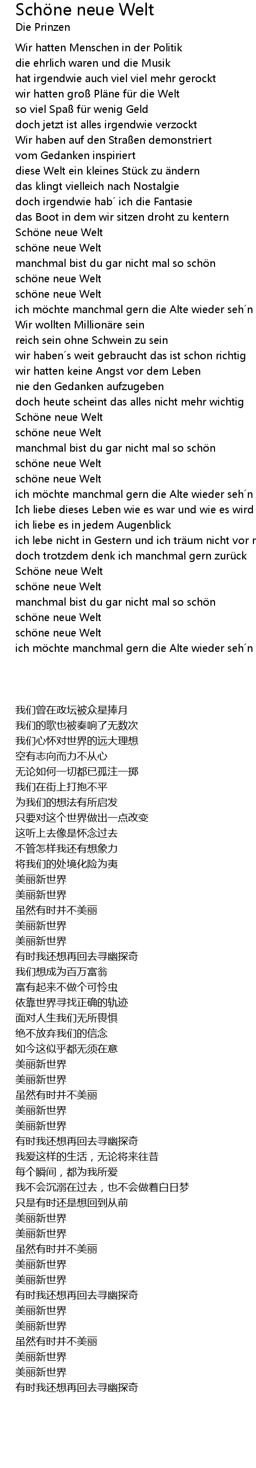 | ich lebe nicht in Gestern und ich tr um nicht vor mich hin | |