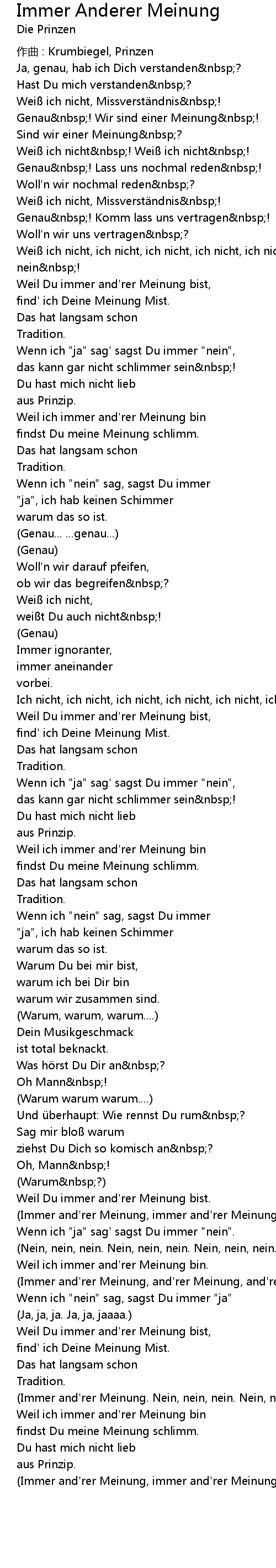 | Weil Du immer and' rer Meinung bist. | |