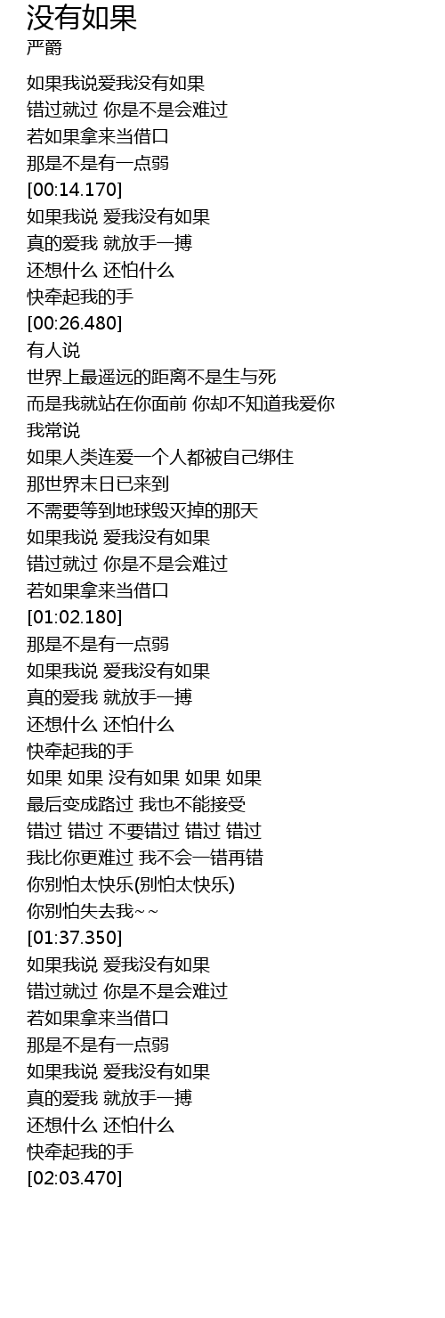| [00:53.690] | 如果我说 爱我没有如果 |