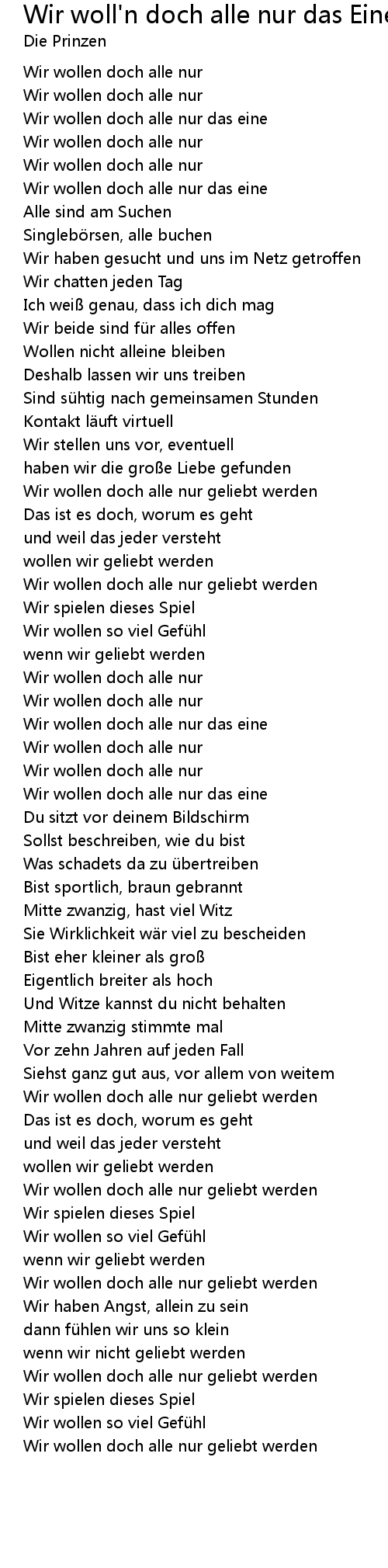 | [00:13.34] | Wir wollen doch alle nur das eine |
