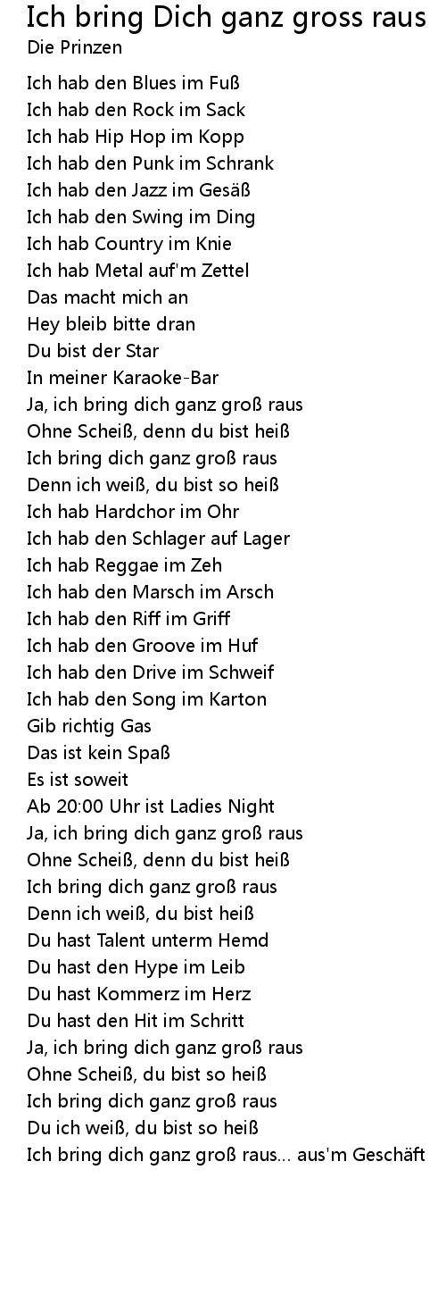 | Ich bring dich ganz gro raus aus' m Gesch ft |