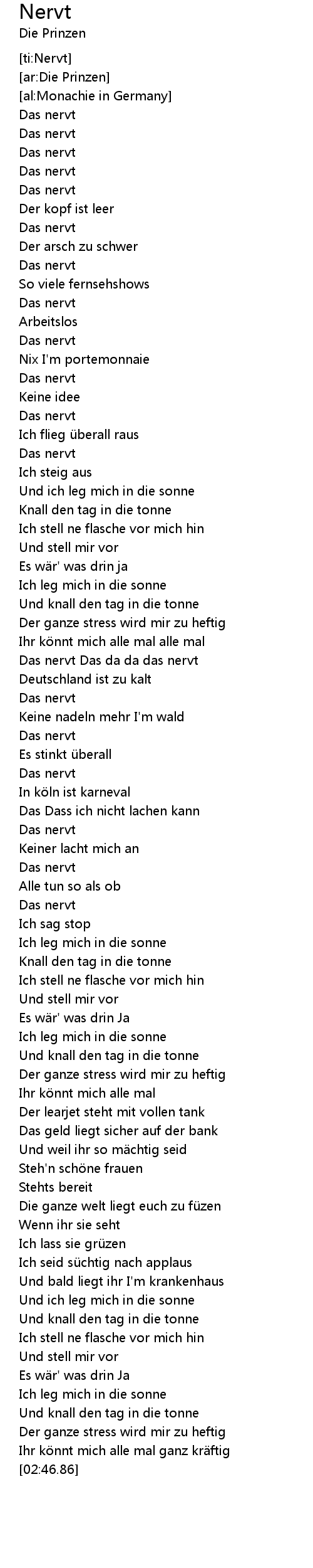 | [02:39.25] | Ihr k nnt mich alle mal ganz kr ftig |