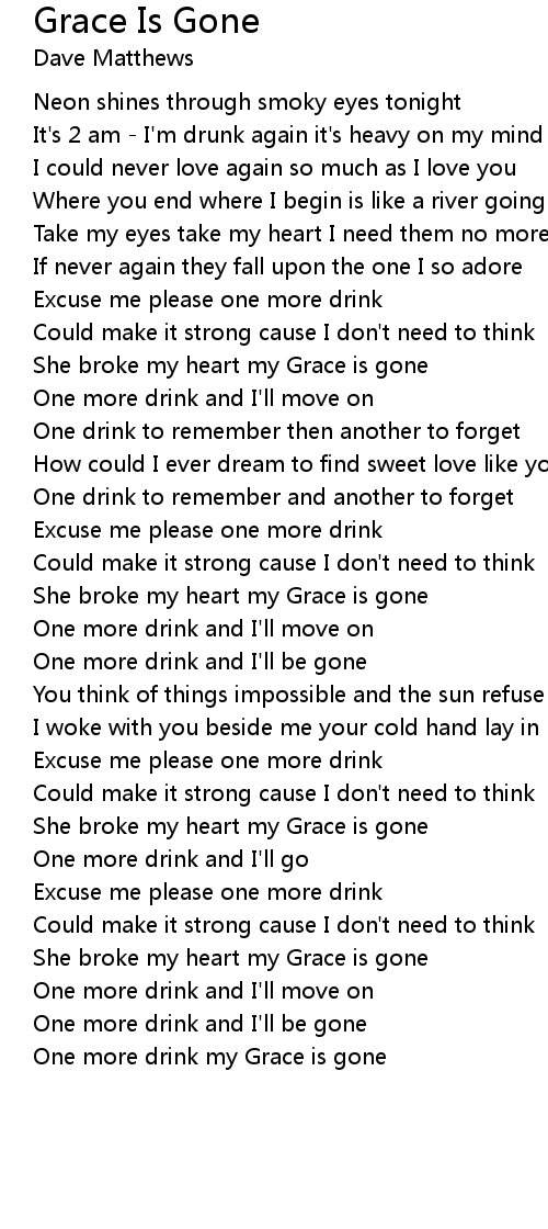 One more drink my Grace is gone |