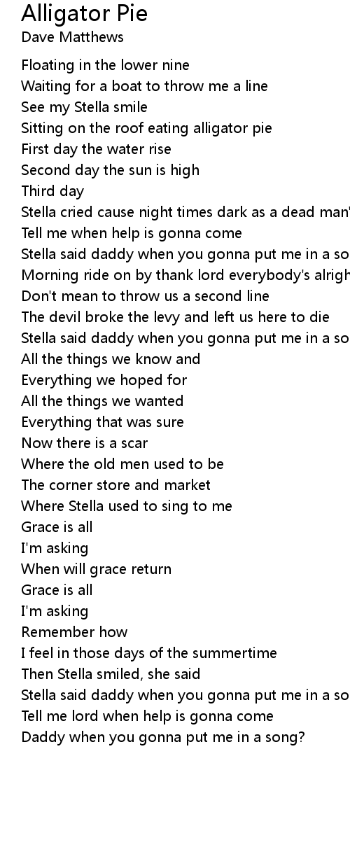 Sitting on the roof eating alligator pie |