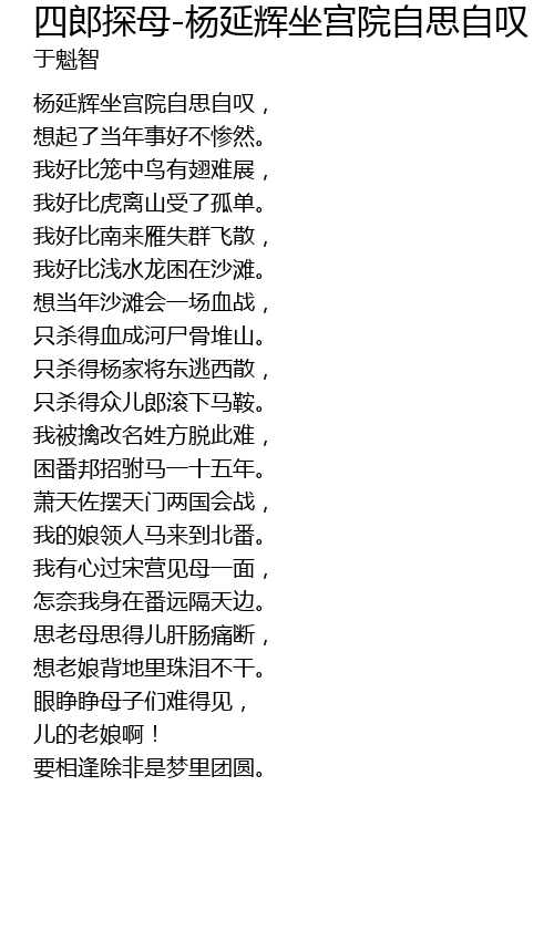 | Song | 四郎探母-杨延辉坐宫院自思自叹 |