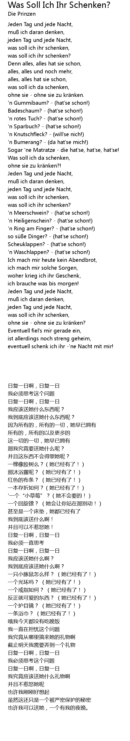 | eventuell schenk ich ihr ' ne Nacht mit mir! |
