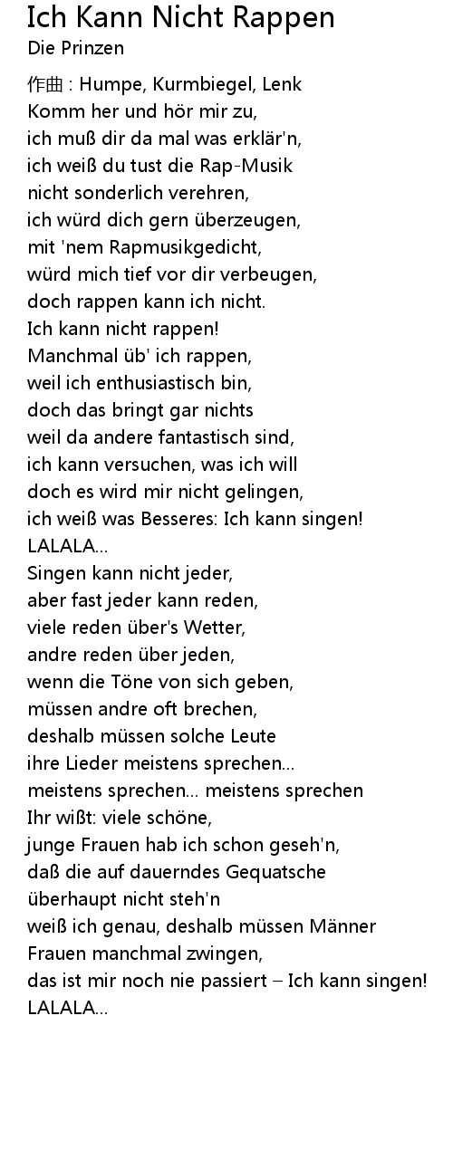 | doch rappen kann ich nicht. | |