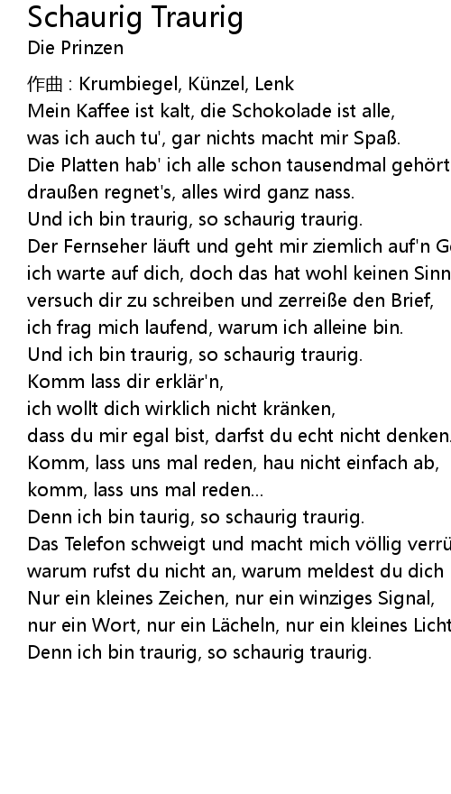 | Mein Kaffee ist kalt, die Schokolade ist alle, | |