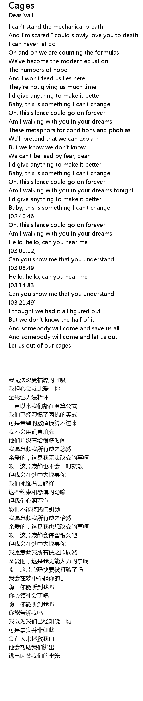 Cages Lyrics