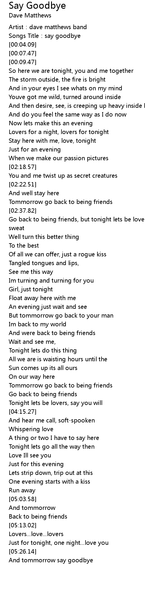 | [04:05.20] | Tonight lets be lovers, say you will |