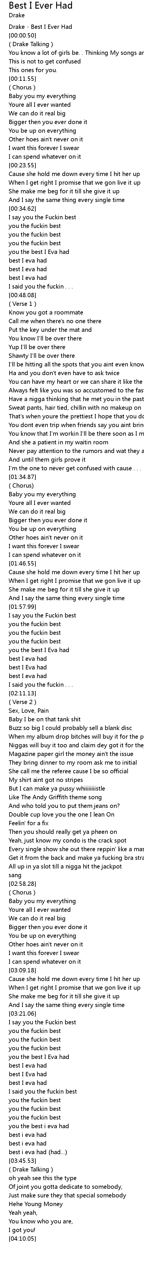 That's when youre the prettiest I hope that you don't take it wrong You dont even trip when friends say you aint bringin Drake along |