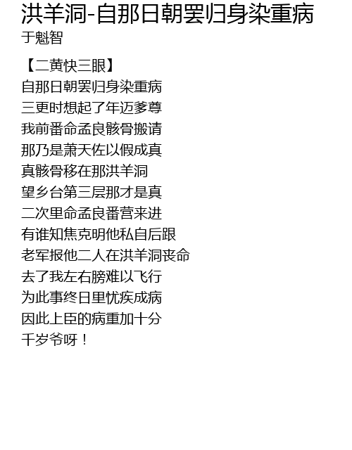 | Song | 洪羊洞-自那日朝罢归身染重病 |