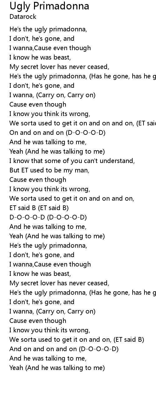 He's the ugly primadonna, (Has he gone, has he gone) |