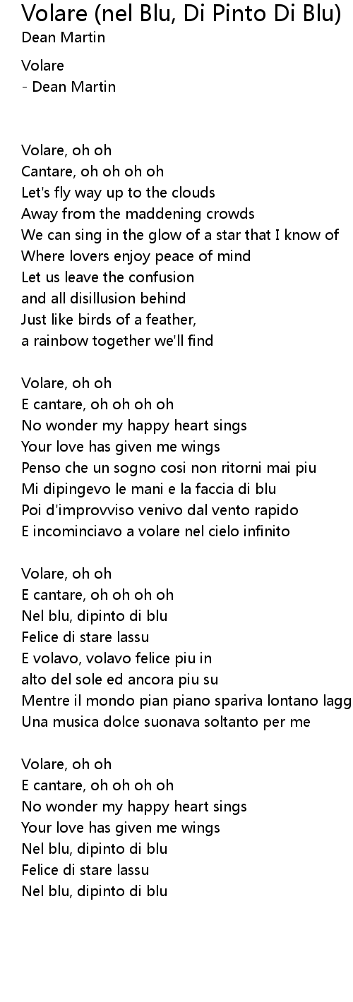 Volare (nel Blu, Di Pinto Di Blu) Lyrics