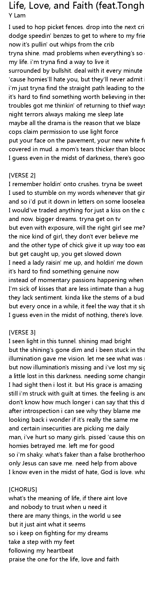 Life, Love, and Faith (feat.Tonghill) Lyrics