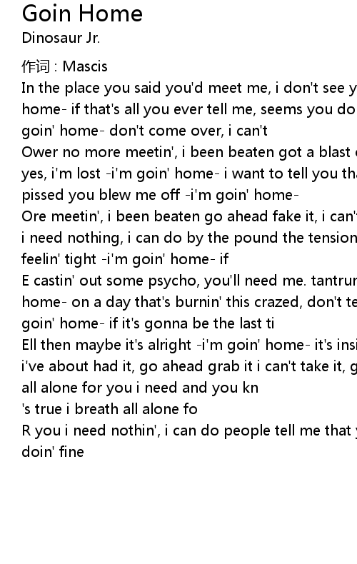 | In the place you said you' d meet me, i don' t see you hanging around i' m goin' home if that' s all you ever tell me, seems you don' t wanna be found and i' m goin' home don' t come over, i can' t | |