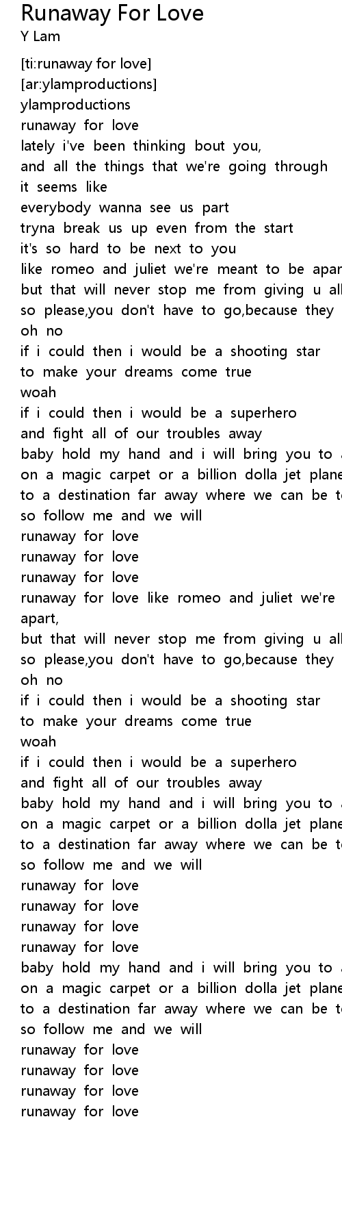 Runaway For Love Lyrics