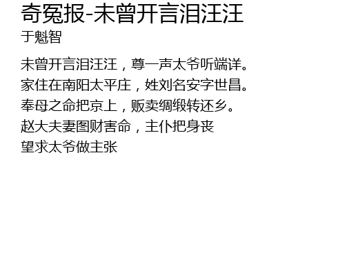 | Song | 奇冤报-未曾开言泪汪汪 |