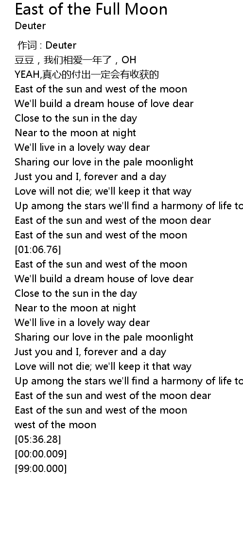 | [00:34.70] | Sharing our love in the pale moonlight |
