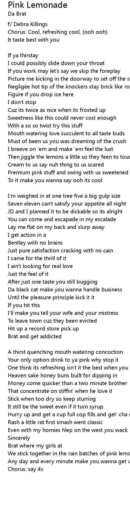 | Add that sugar baby in my pink lemonade Da Brat | |
