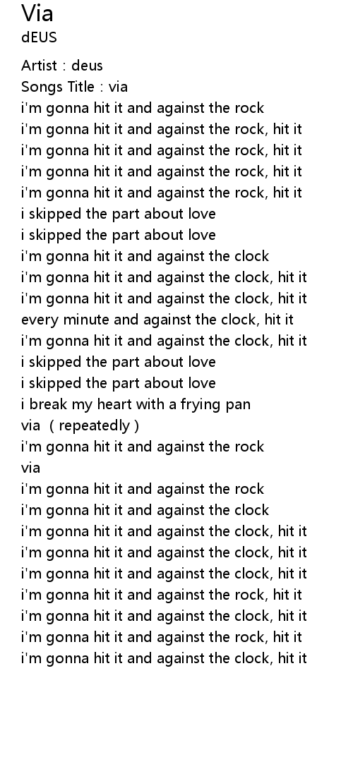 | [00:59.11] | i' m gonna hit it and against the rock, hit it |
