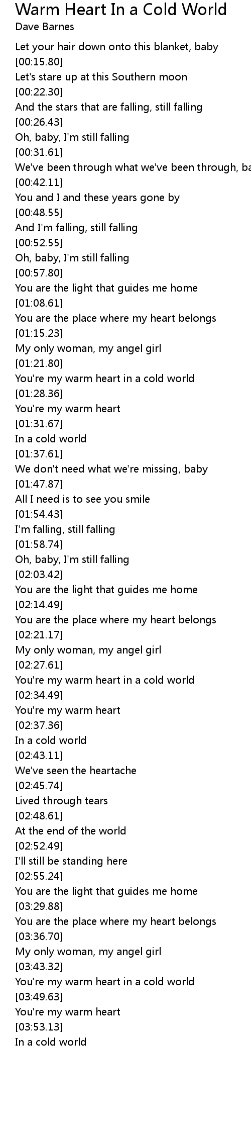 You're my warm heart in a cold world |