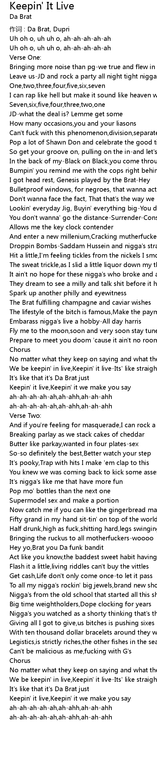 | We be keepin' in live,Keepin' it live-Its' like straight to the scene | |