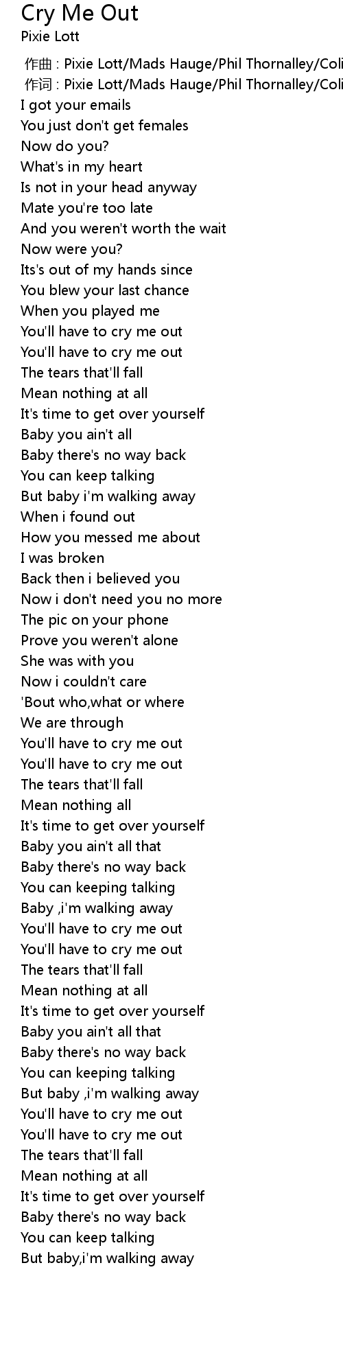 | [00:01.000] | zuo ci : Pixie Lott Mads Hauge Phil Thornalley Colin Campsie |